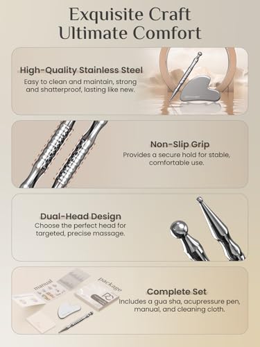 HIGH-QUALITY: Our gua sha and reflexology instruments are fabricated from food-grade chrome steel with clean surfaces that match the pores and skin and provides a cushty feeling; these instruments will not be solely enduring but in addition straightforward to wash and keep, superb to your skincare
